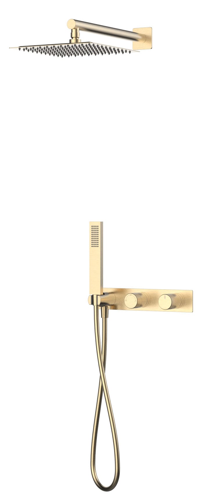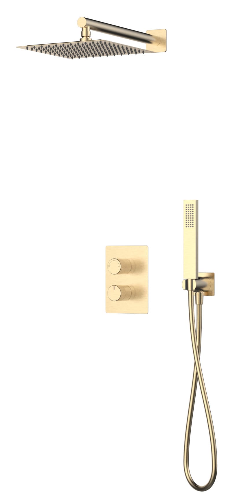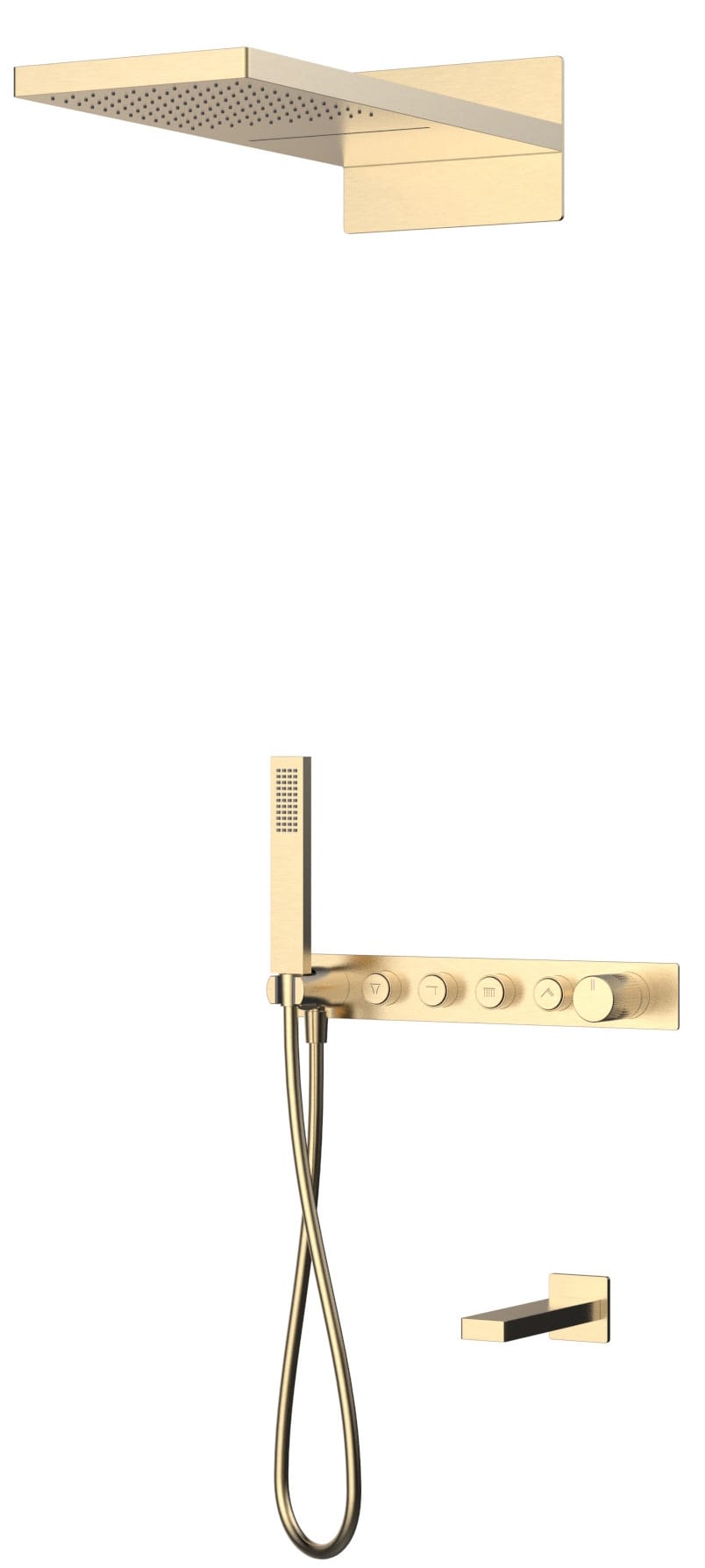Premium Concealed Shower System, Square Edition, Brushed Gold