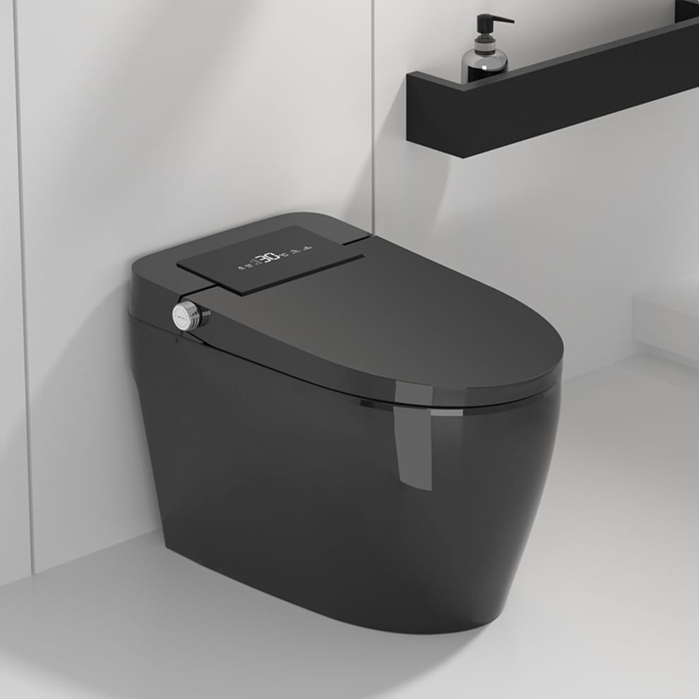 Elevate your bathroom to a sanctuary of modern luxury with the LuxeJet Intelligent Smart Toilet. Finished in a sophisticated matte black, this tankless unit combines cutting-edge technology with minimalist design. Key features include an integrated bidet with adjustable sprayer settings, a multi-level heated seat for ultimate comfort, and a high-definition LED display for real-time temperature monitoring. The system is equipped with a motion-activated auto-open/close lid, foot sensor flush for a completely hands-free experience, and powerful UV sterilization to ensure peak hygiene. Its ergonomic elongated design and soft-close technology make it a perfect addition to any contemporary home.