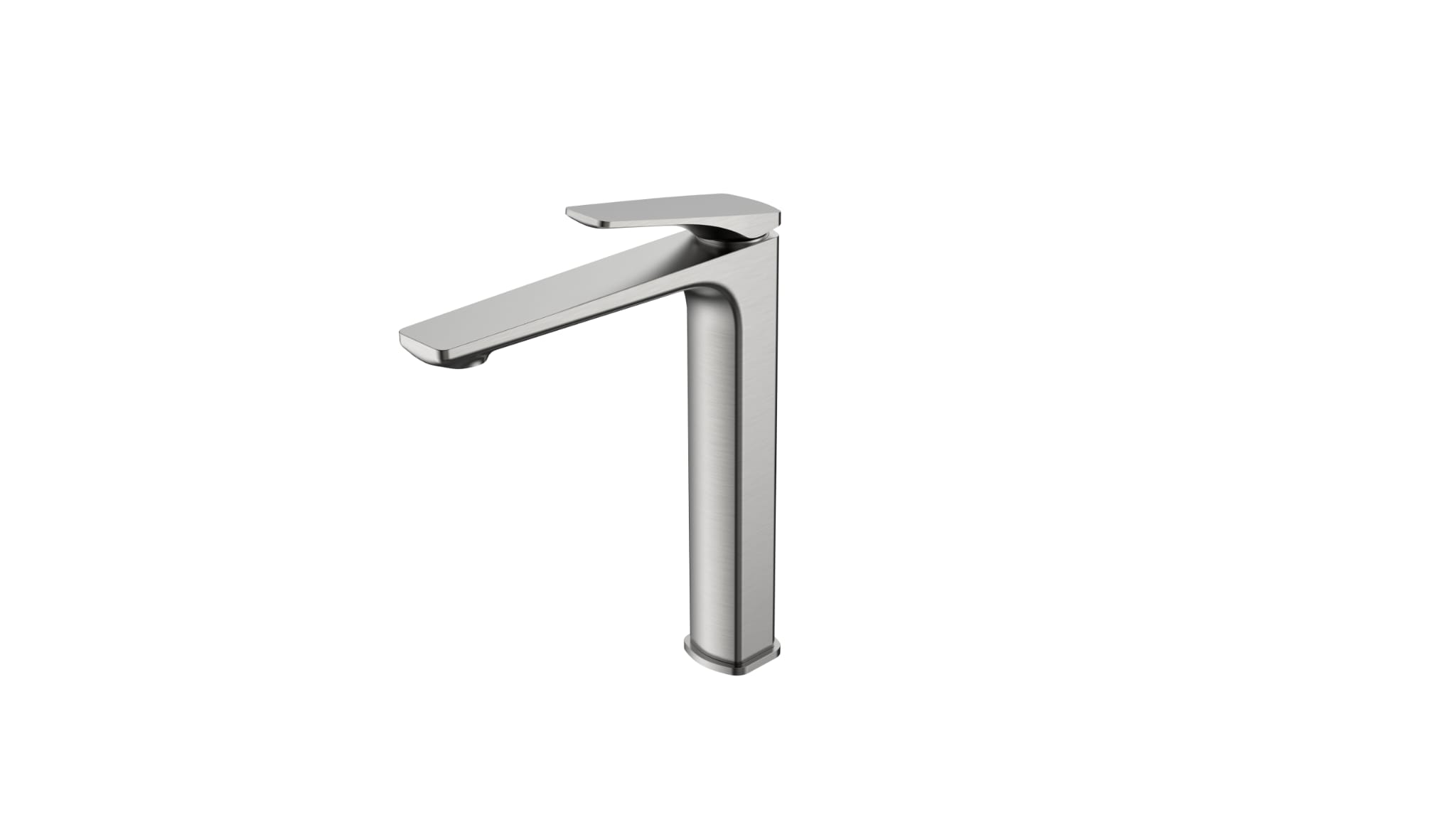 This premium high-rise basin mixer features a sleek, minimalist design with a tall, slender body and a long, flat spout. Crafted from high-quality solid brass with a polished chrome or brushed nickel finish, it provides exceptional durability and corrosion resistance. It is equipped with a high-performance ceramic cartridge for smooth, precise water control and a water-saving aerator to reduce consumption without sacrificing performance. Its elevated profile makes it the perfect choice for pairing with modern countertop vessel basins.