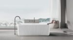 Elevate your bathroom’s aesthetic with this premium freestanding bathtub, featuring a sophisticated fluted exterior. The vertical ribbed texture creates a dynamic interplay of light and shadow, adding a tactile, architectural element to your space. Crafted from high-quality sanitary acrylic or stone resin (composite), this tub is designed for both durability and superior heat retention, ensuring your bath water stays warm for longer. Its minimalist silhouette and clean lines make it a perfect fit for modern, Japandi, or spa-inspired interiors.