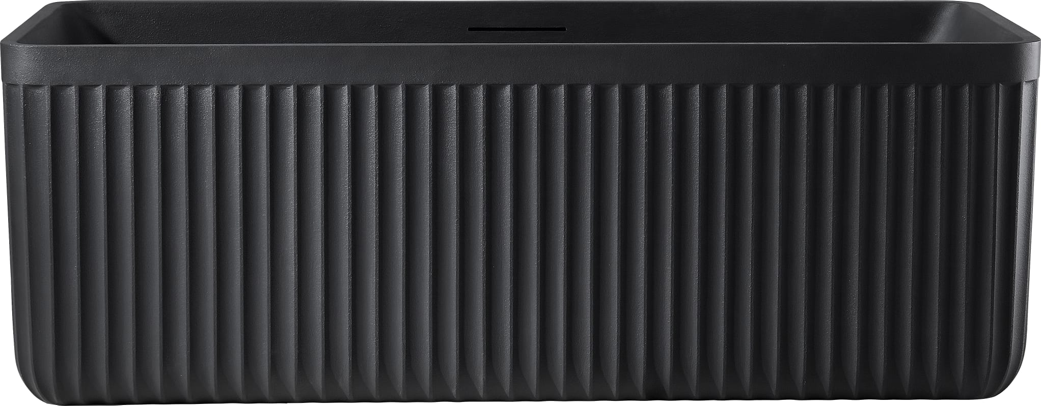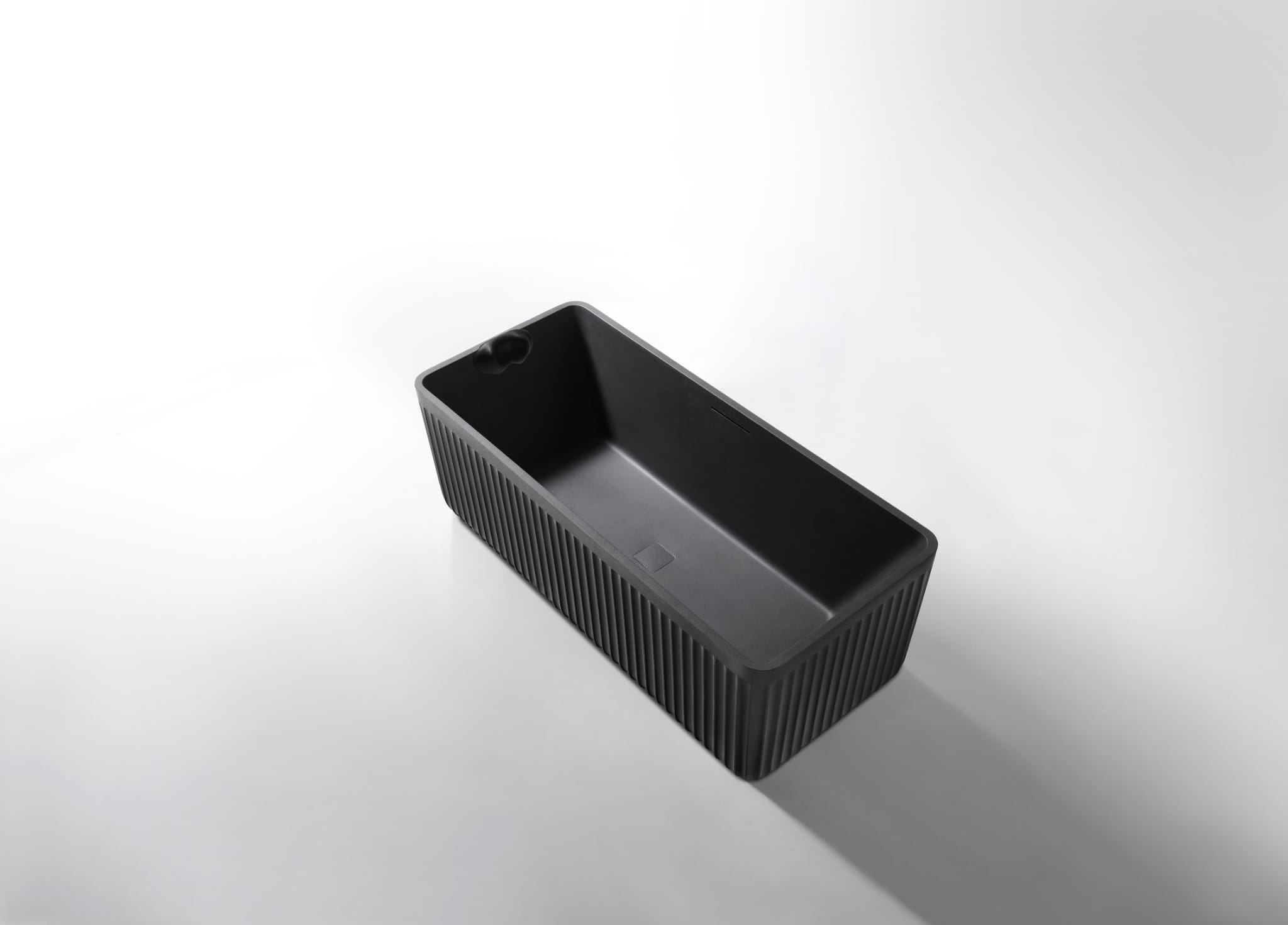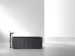 This premium freestanding bathtub combines architectural elegance with modern luxury. Its standout feature is the vertical fluted (riflat) exterior, which adds texture and a rhythmic design element to any bathroom. Crafted from high-quality materials with a matte “Natural Black” finish, it offers a deep soaking experience while serving as a stunning focal point. The minimalist rectangular silhouette is softened by rounded corners, ensuring both comfort and a timeless aesthetic.